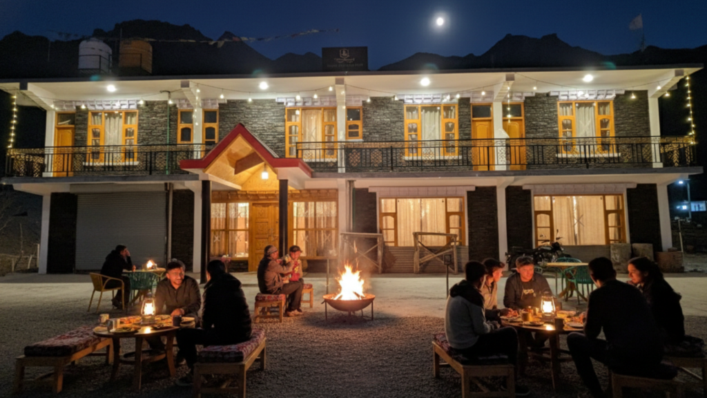 The experience at Julley Jispa is shaped around staying longer and moving slower. Located in the Jispa Valley, the property is designed for travellers who arrive after long journeys and choose to pause rather than rush onward. With shared spaces, steady comforts, and evenings that unfold naturally, time here feels settled and unforced.